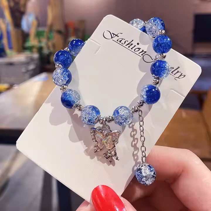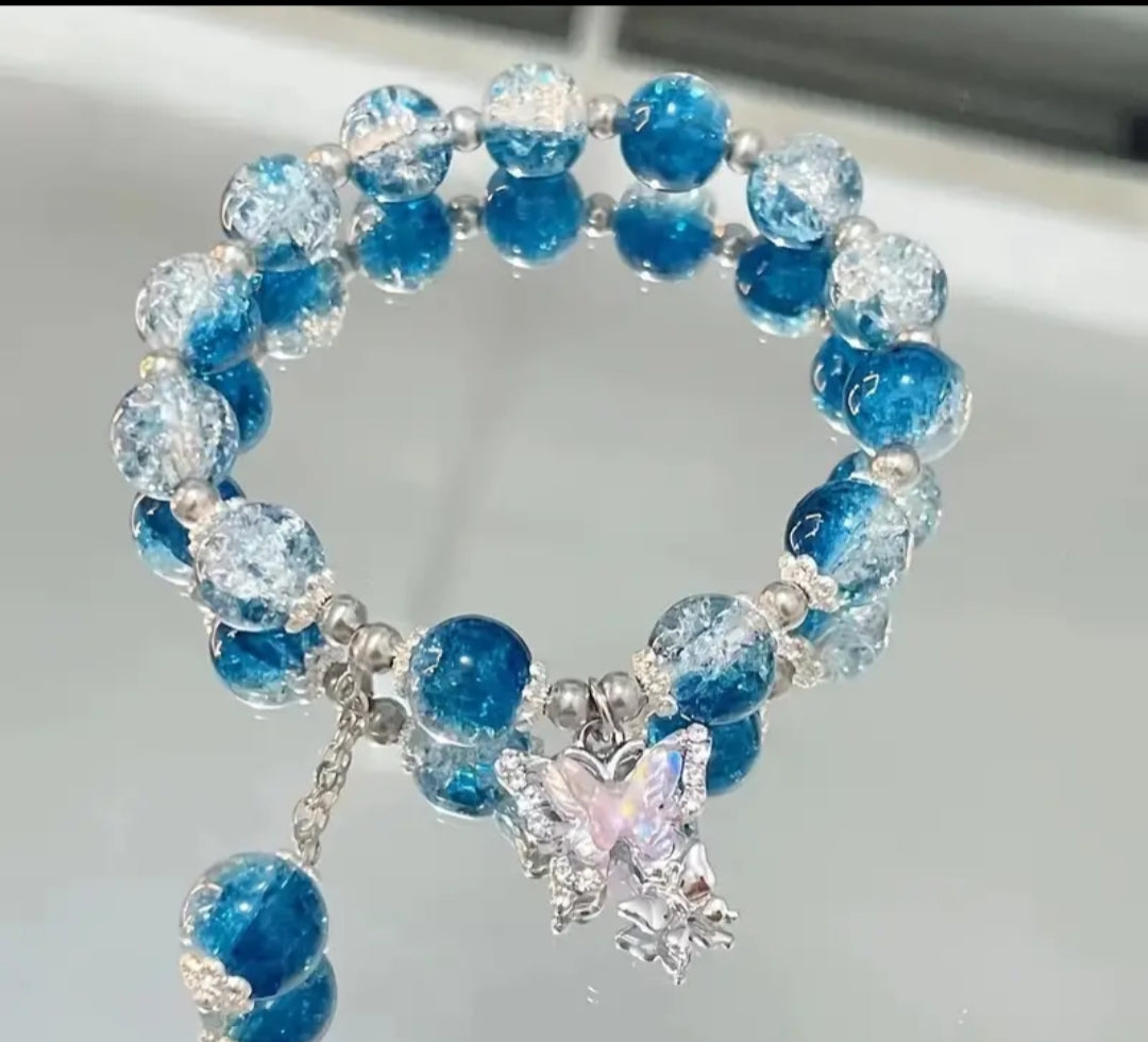 ⭐️⭐️⭐️⭐️⭐️ Name: Madeline H. Review: "This bracelet is absolutely beautiful! The mix of blue and clear crystals catches the light so nicely, and the butterfly charm adds the sweetest touch. It feels delicate but well-made, and it goes with everything from casual outfits to dressier looks. I’ve gotten so many compliments already—definitely one of my favorite pieces