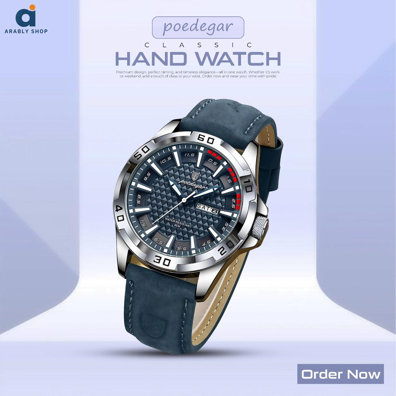New POEDAGAR 895 Quartz 30 Miters Deep Waterproof Leather Strap Man Date Week Calendar Fashion Luminous Hands Business Men Watch