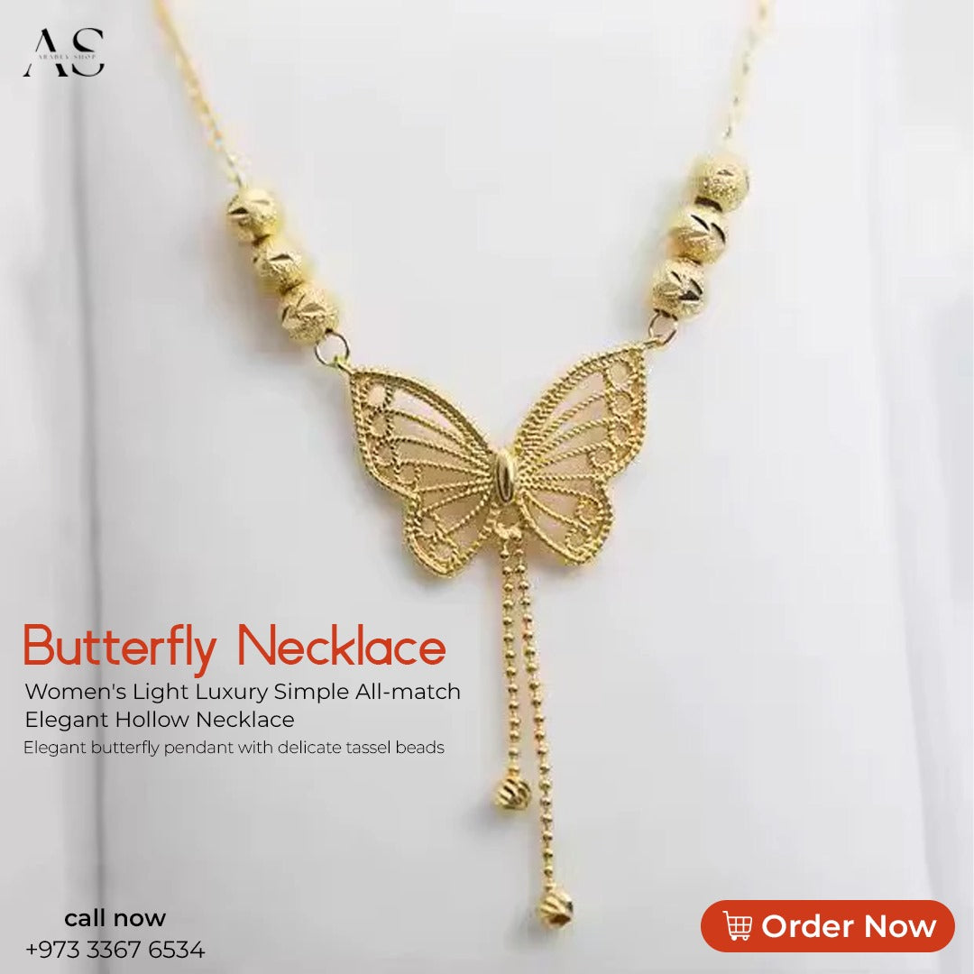 New Tassel Beads Butterfly Necklace Women's Light Luxury Simple All-match Elegant Hollow Necklace