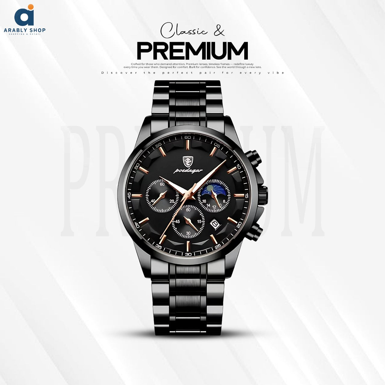 POEDAGAR New 928 Luxury and High Quality Waterproof Stainless Steel Strap Quartz Watch for Men's